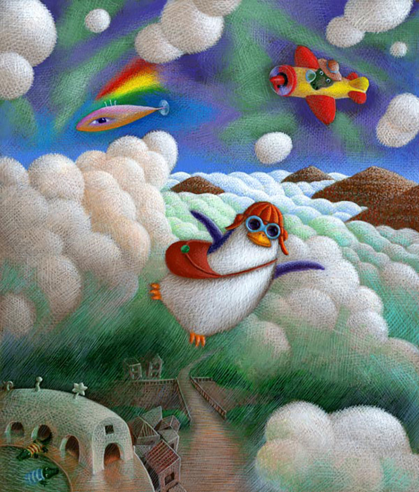 グーはとてもつかれていたので、どこかで休もうと風に乗って、村から去って行った。