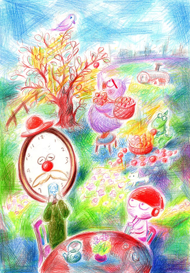 | タマ「ポチは全部採って、一人で食っちまうつもりらしい」小春じい「困ったやつじゃ。"少しは小鳥たちのために残しとけ"と言ったけど、ポチは食い物のこととなると頑固じゃ」 宇宙人のタマも、時計の小春じいも果物は食べない。 貧しいとは、沢山持ているのに、さらに欲しがる者のことだ。 釈迦が亡くなる前に残した「遺教経」(ゆいきょうぎょう)に、次のようにある。 足ることを知るひとは、地面に寝るような暮らしでも安楽だ。 足ることを知らないものは、豪邸にいて、まだ満足がいかない。 足ることを知らないものは、豊かであっても貧しい。 足ることを知る人は、貧しくても豊かである。 貧しい人とは、何も無い人ではなく欲しがる人のことだ。 人はどこまで贅沢をしても、幸福感は持続しない。 |