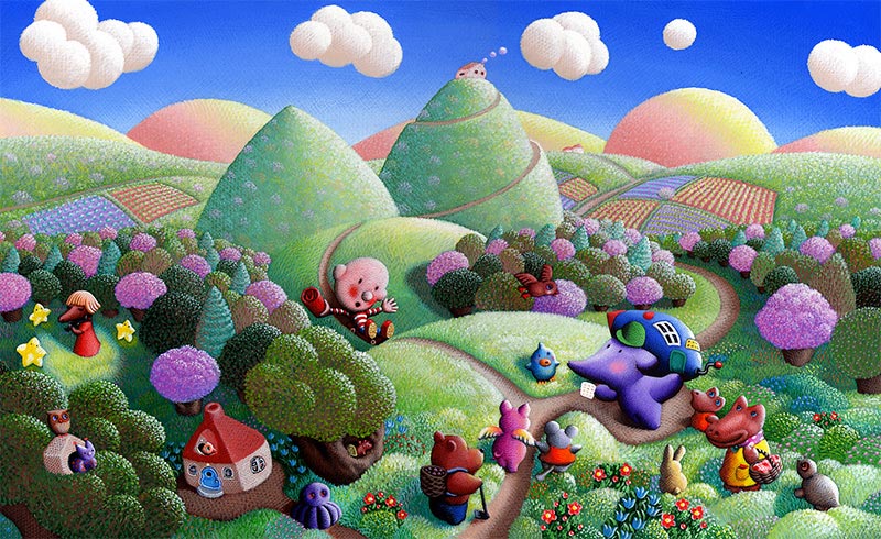 i-8「おっぱい山のシャモジくん」 「おっぱいやまさん、にもつがとどいています。はんこください」 シャモジくんは やまのうえからおおきなこえで へんじをしました。 「そんなひとはいませんよ。それはこのやまのなまえです」 でも、しかたがないので、 シャモジくんは いそいでハンコをもって、おっぱいやまをすべりおりました。 ・・・「なんだろう?なかみはでっかいいもかな?それともタヌキのしっぽかな?」 むらはおおさわぎです。