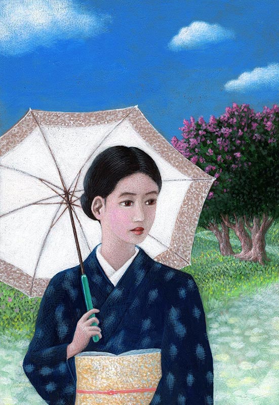 戦前の日傘をさす人。