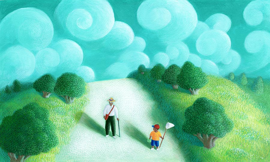 p-57「おじいちゃんのバス停-夏休み・Summer vacation」
