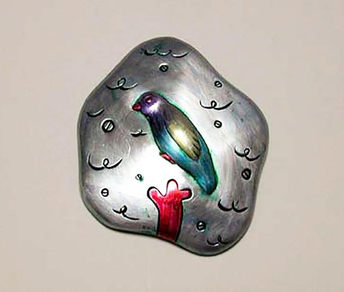 s-13 「小鳥 bird」 アルミ打ち出し着彩。