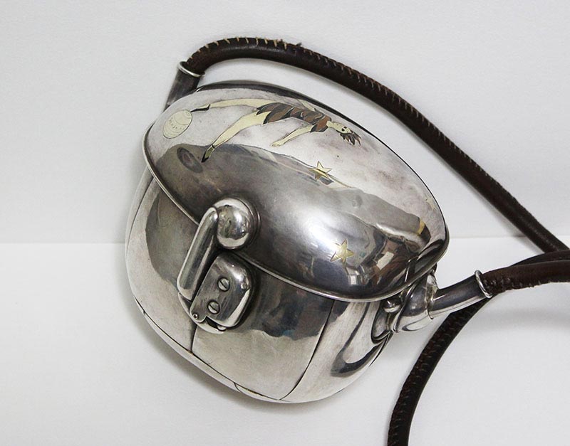s-6「銀製のバック Silver bag」制作したのは30年以上昔。当時は業界から無視されたが、今は違う。 しかし、今は絵描きに転向し、工房も道具類も処分してしまい、視力も弱り、再度作るのは難しくなった。