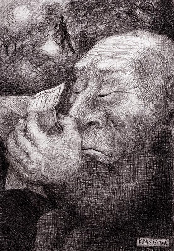 p-160「新聞を読む老人・Old man reading a newspaper」