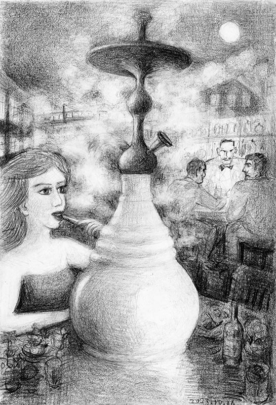 p-165「水タバコを吸う女・Woman smoking hookah」