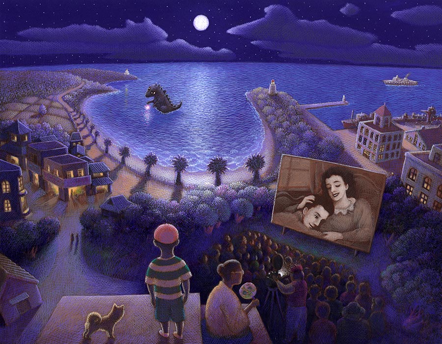 ゴジラが線香花火をしていた。でも、誰も映画に夢中で気がつかなかった。