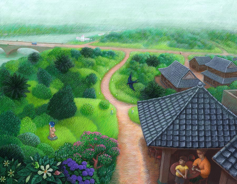 p-78「梅雨のツバメ・Swallows of rain」個人蔵