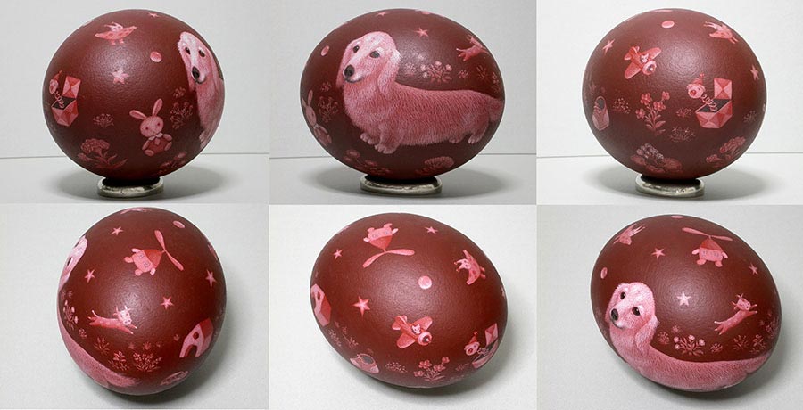 s-19「チョコボール Chocolate ball」ダチョウの卵にダックスフンドを描いた。